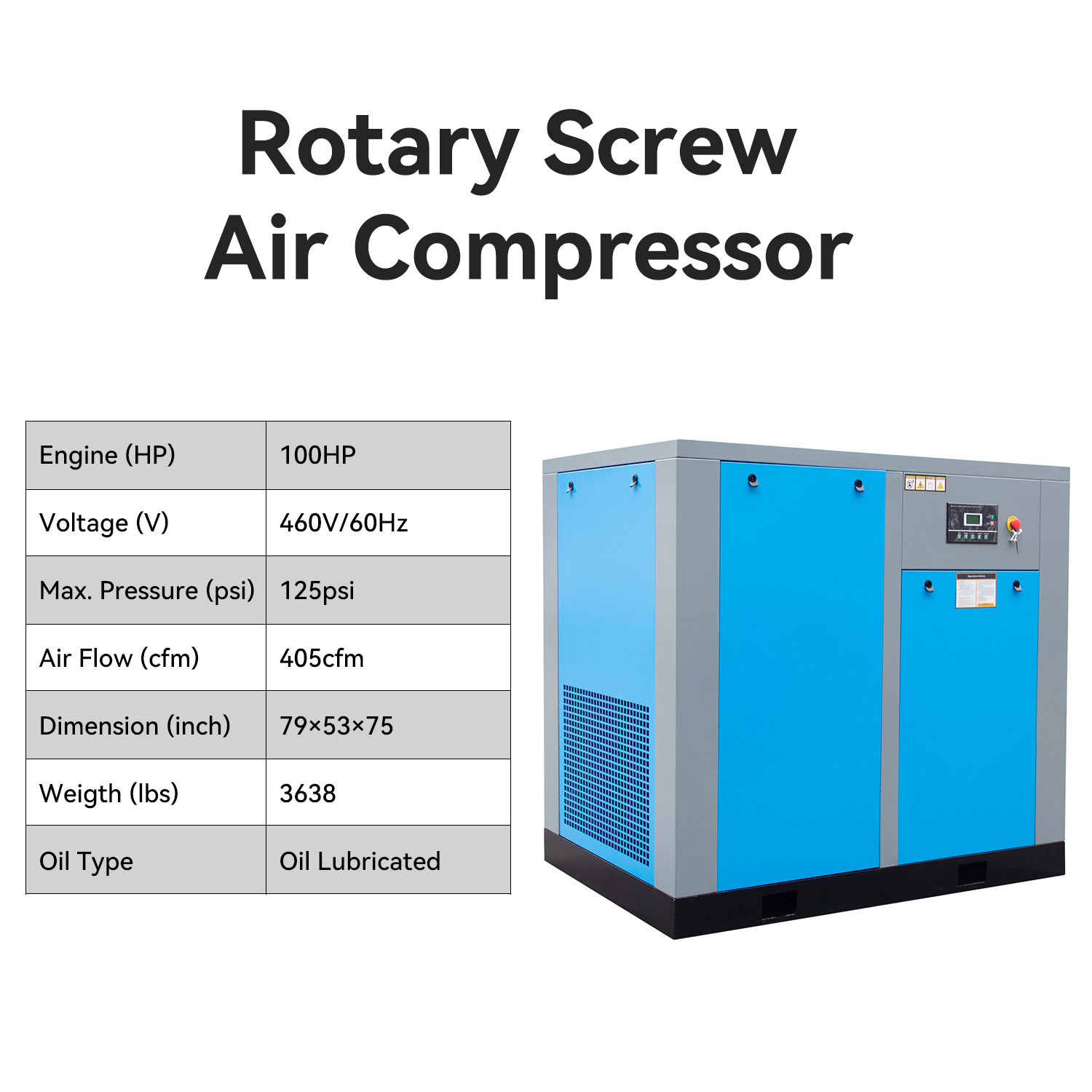 100HP Rotary Screw Air Compressor 405CFM 125PSI 460V 3 Phase