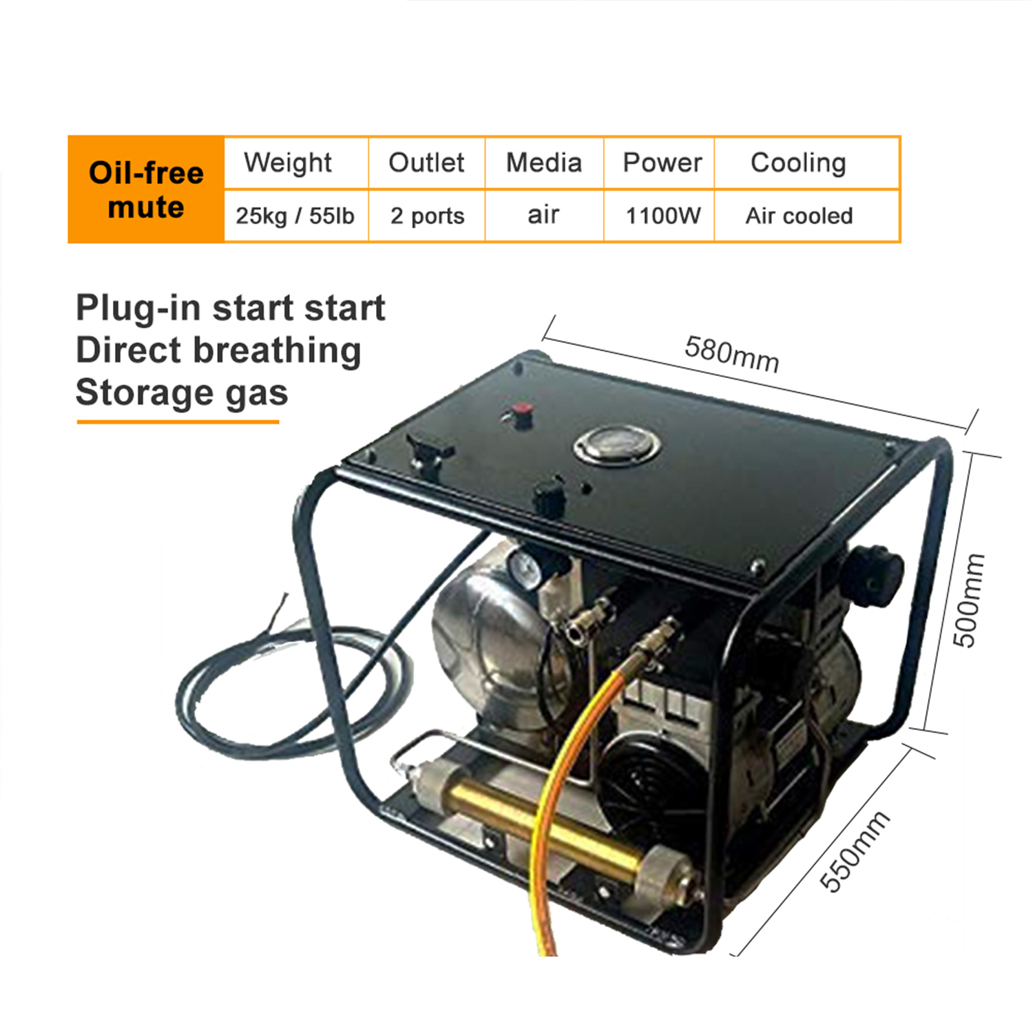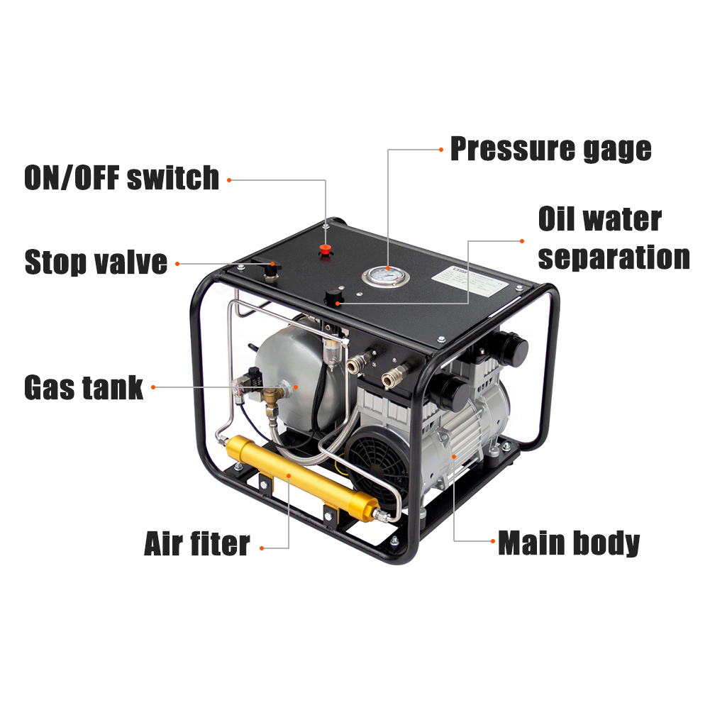 110V 1100W Oil-Free Air Compressor for Diving Portable Piston Type Hookah Dive System