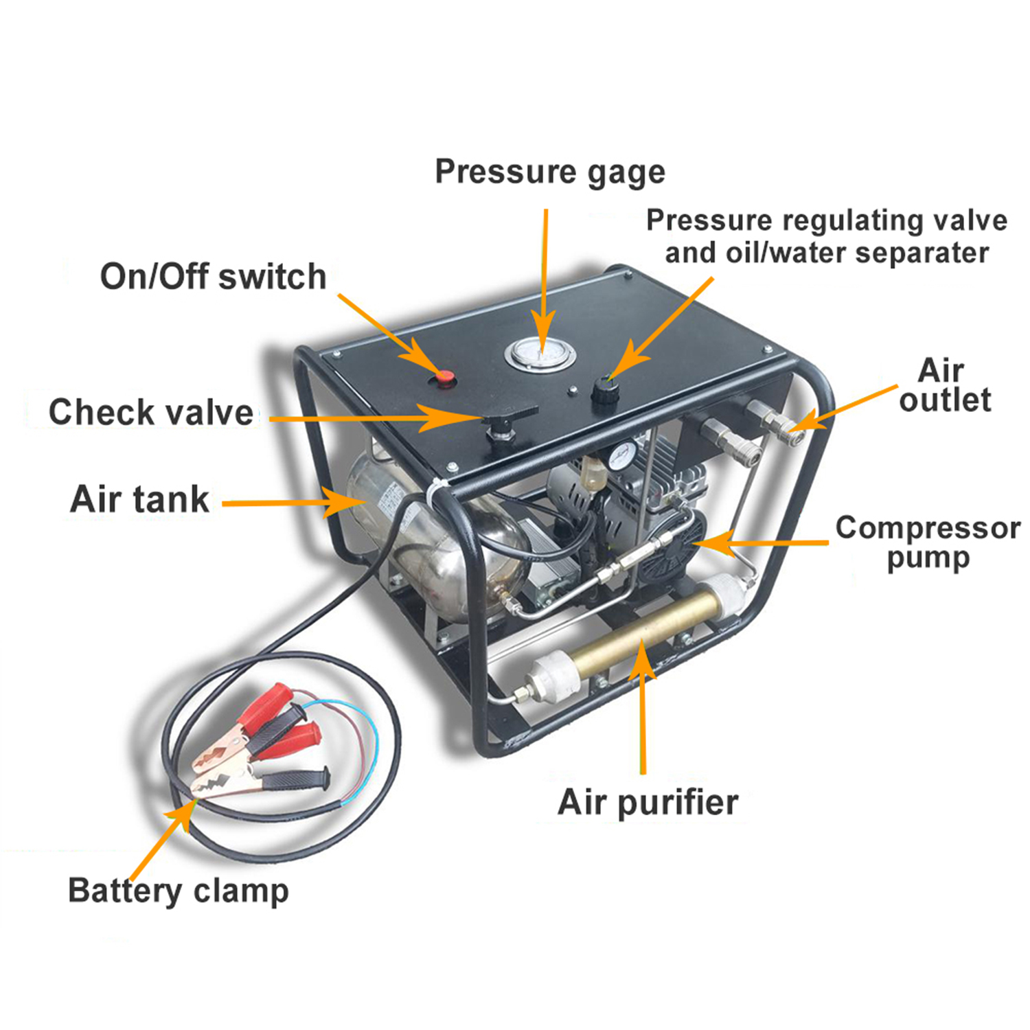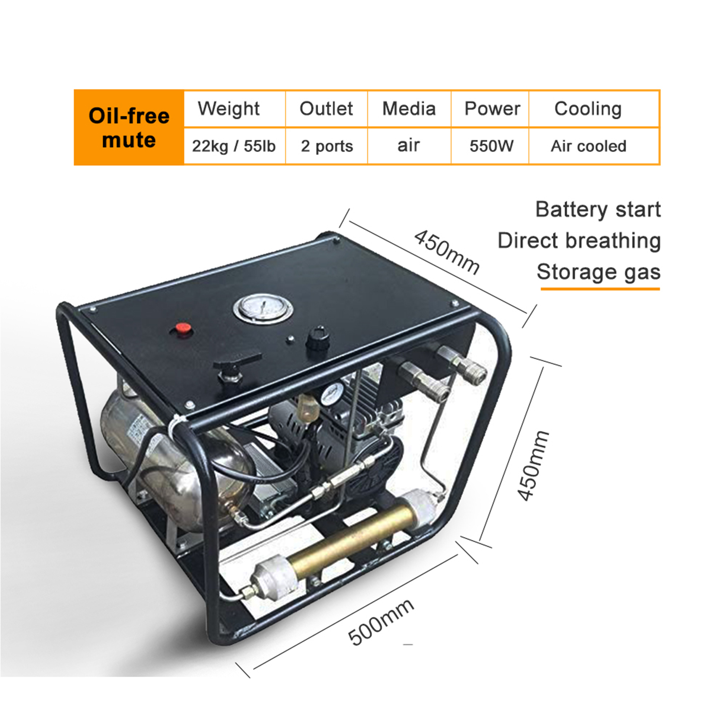 12V 550W Oil-Free Air Compressor for Diving Portable Piston Type Hookah Dive System