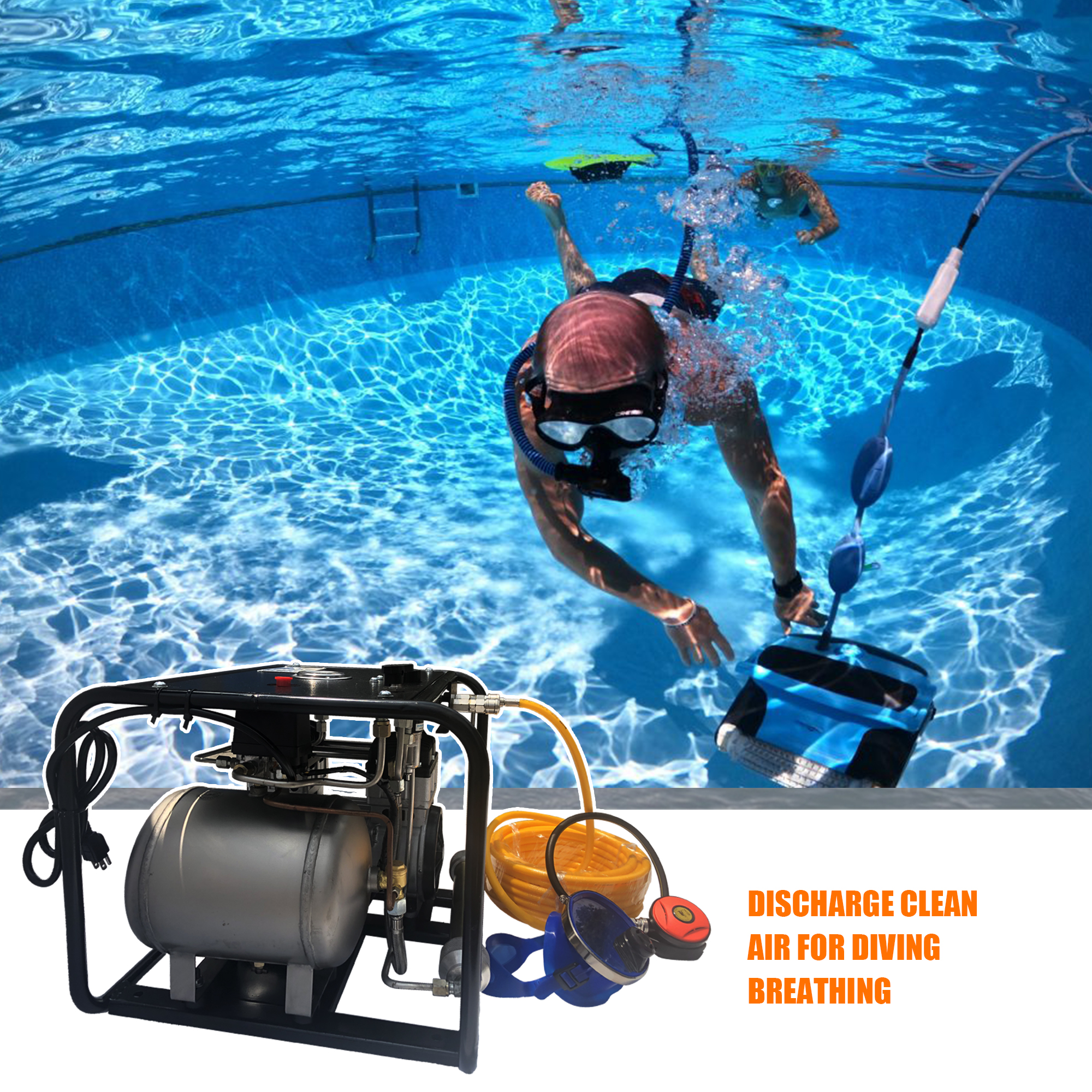 Need a more powerful and stable air supply for shallow diving? This 12V 550W oil-free piston air compressor is designed for hookah dive systems, delivering reliable and continuous breathing air for underwater work and recreational diving.