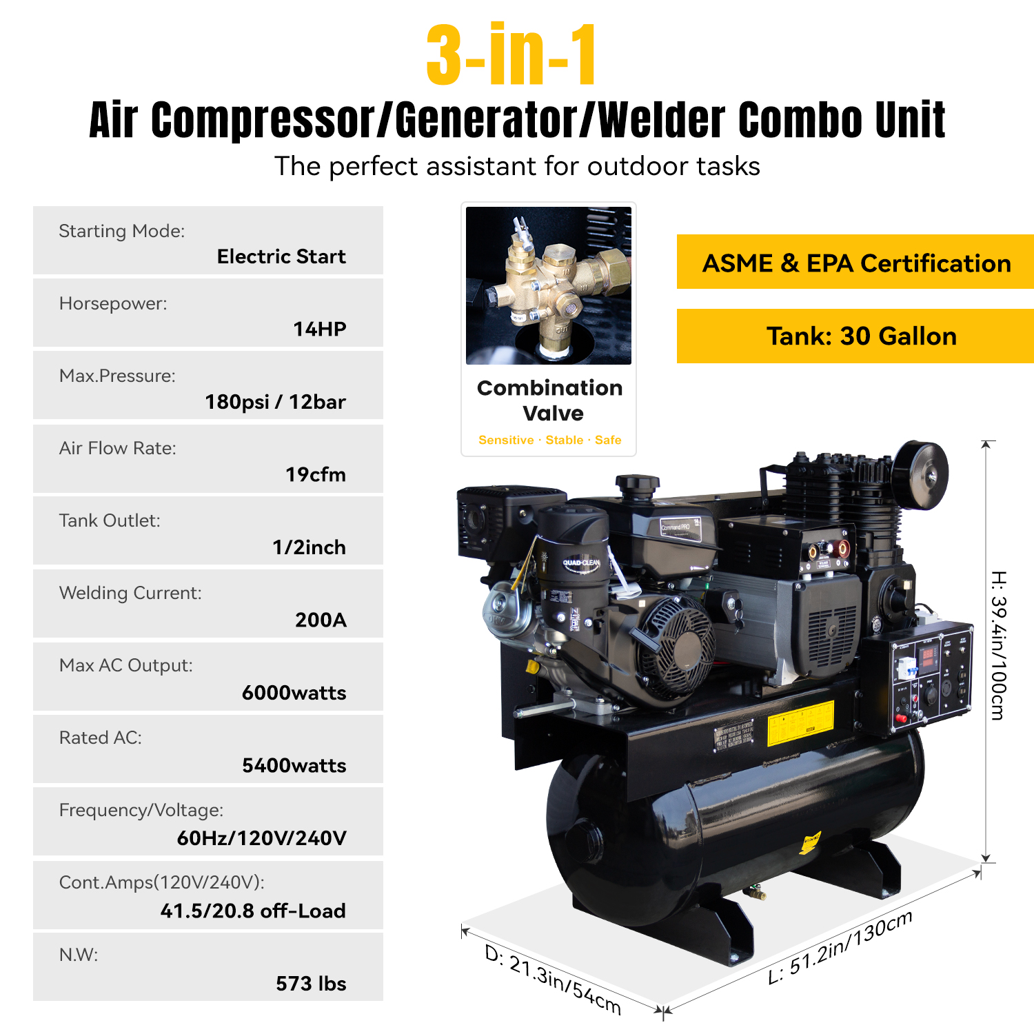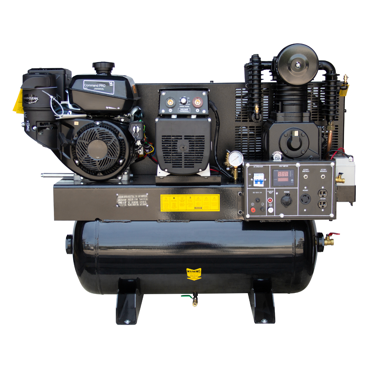 Need a complete power solution for job sites? This 3-in-1 unit combines an air compressor, generator, and welder into one powerful machine, delivering maximum efficiency and flexibility for industrial and construction applications.