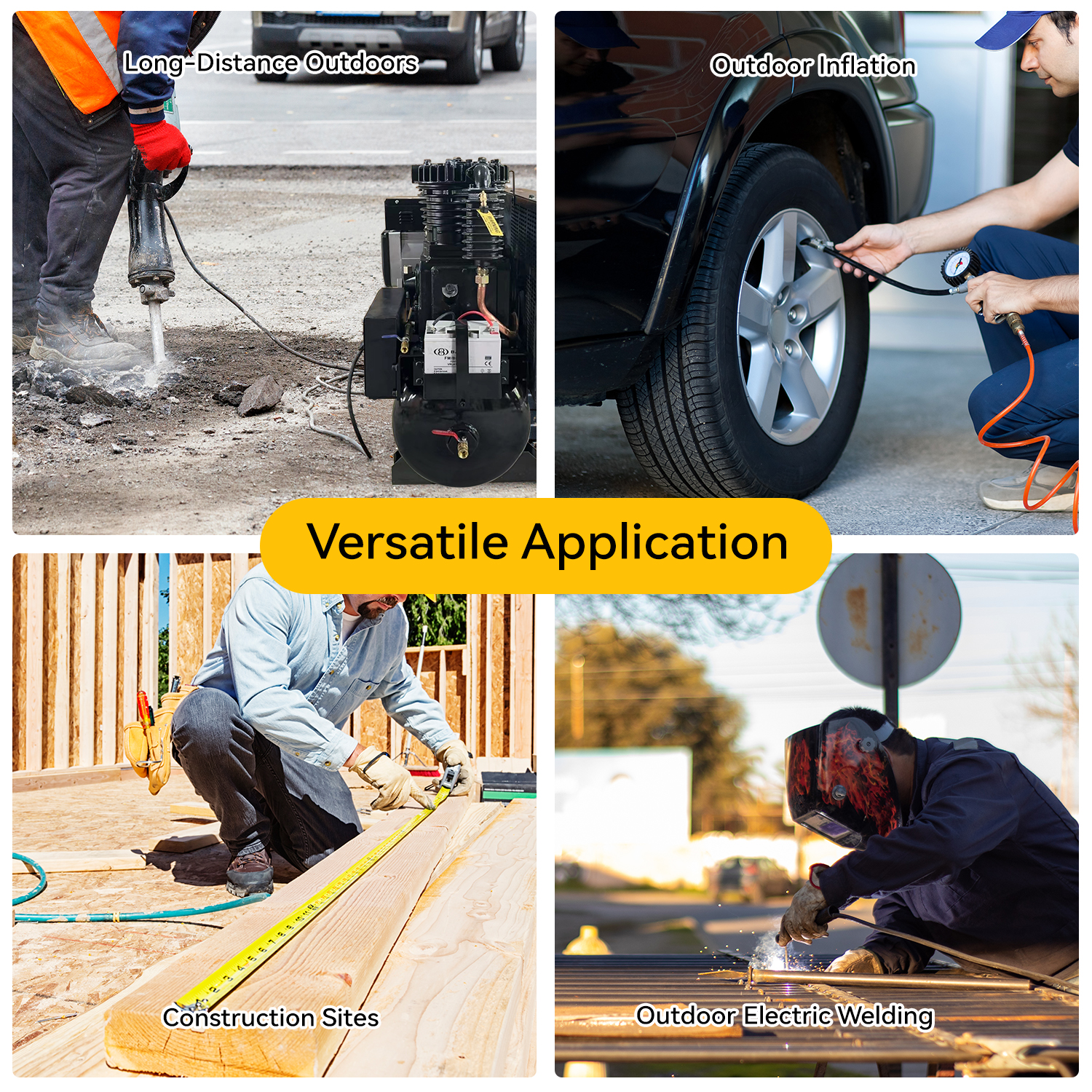 Ideal for construction sites, mobile repair operations, pipeline work, farms, remote industrial projects, and any environment requiring compressed air, power generation, and welding capabilities in one machine.