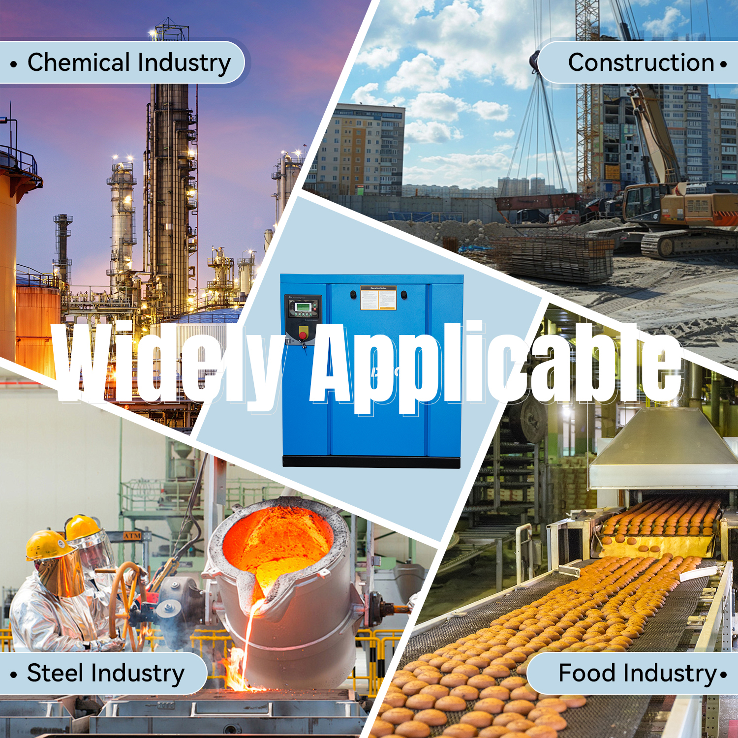 Ideal for automotive repair shops, CNC machining, woodworking, small manufacturing plants, and general industrial applications requiring stable compressed air supply.