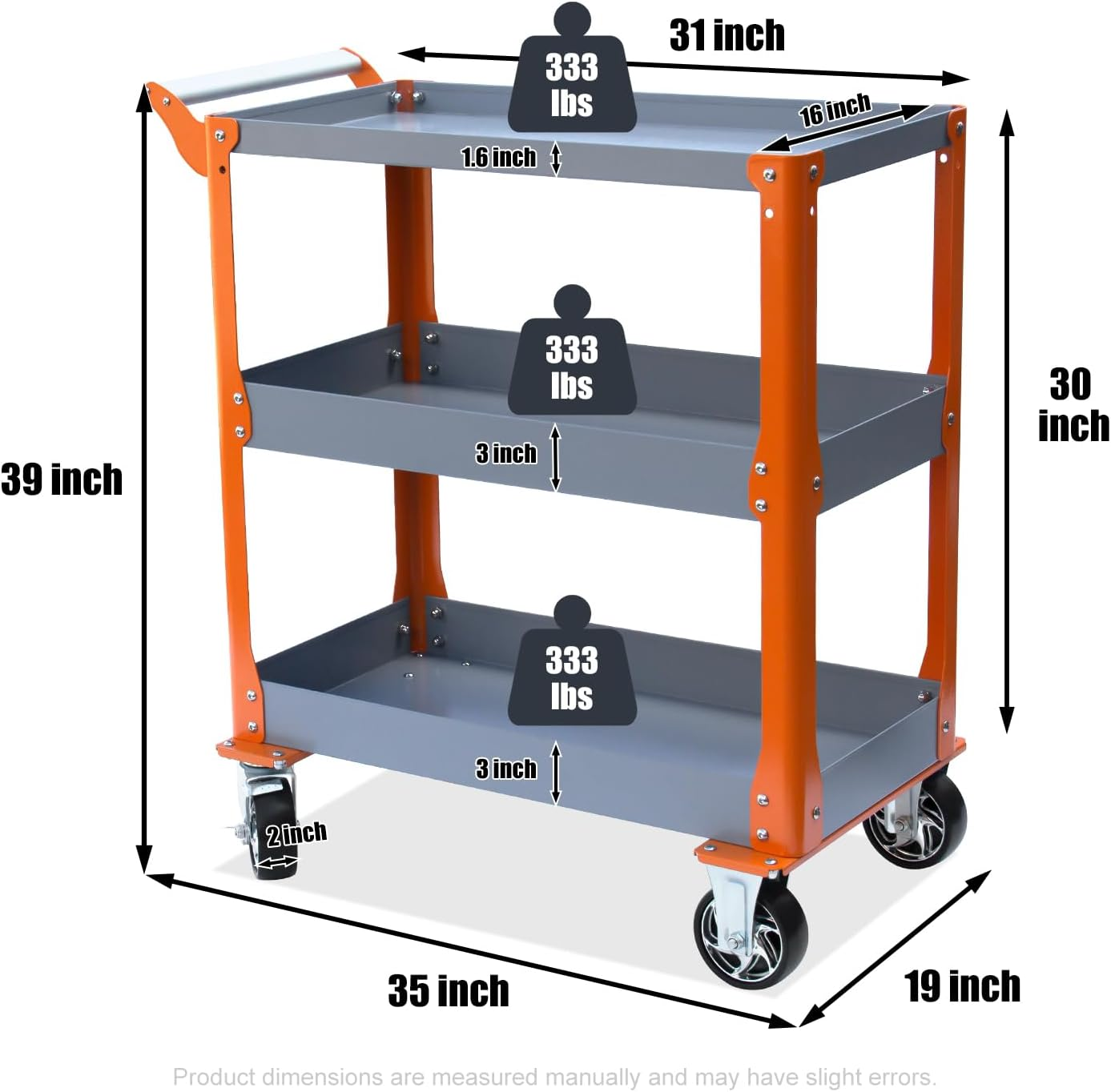 3-Tier Heavy Duty Steel Cart (1000 lbs)