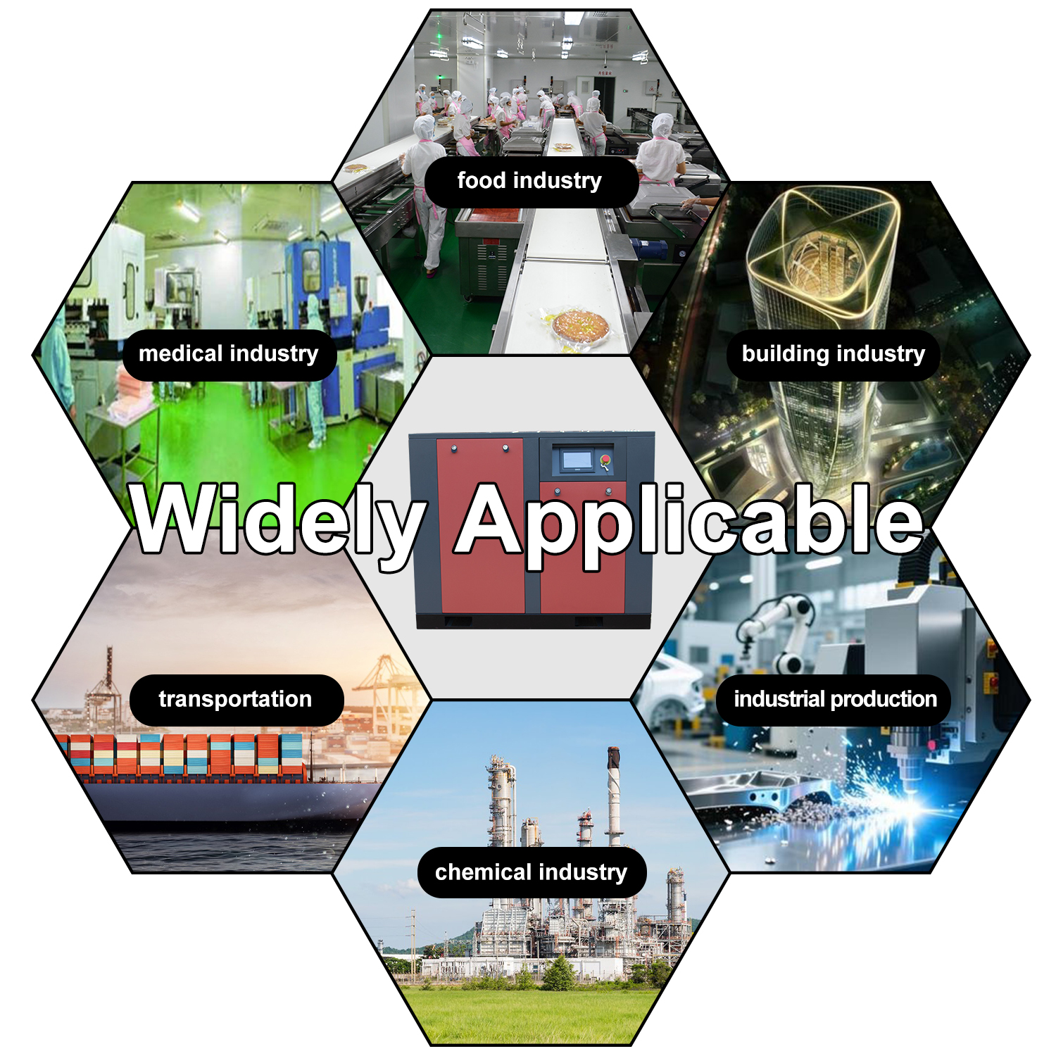 Ideal for manufacturing plants, automotive repair centers, CNC machining, and heavy-duty industrial production lines requiring stable and high-volume compressed air supply.