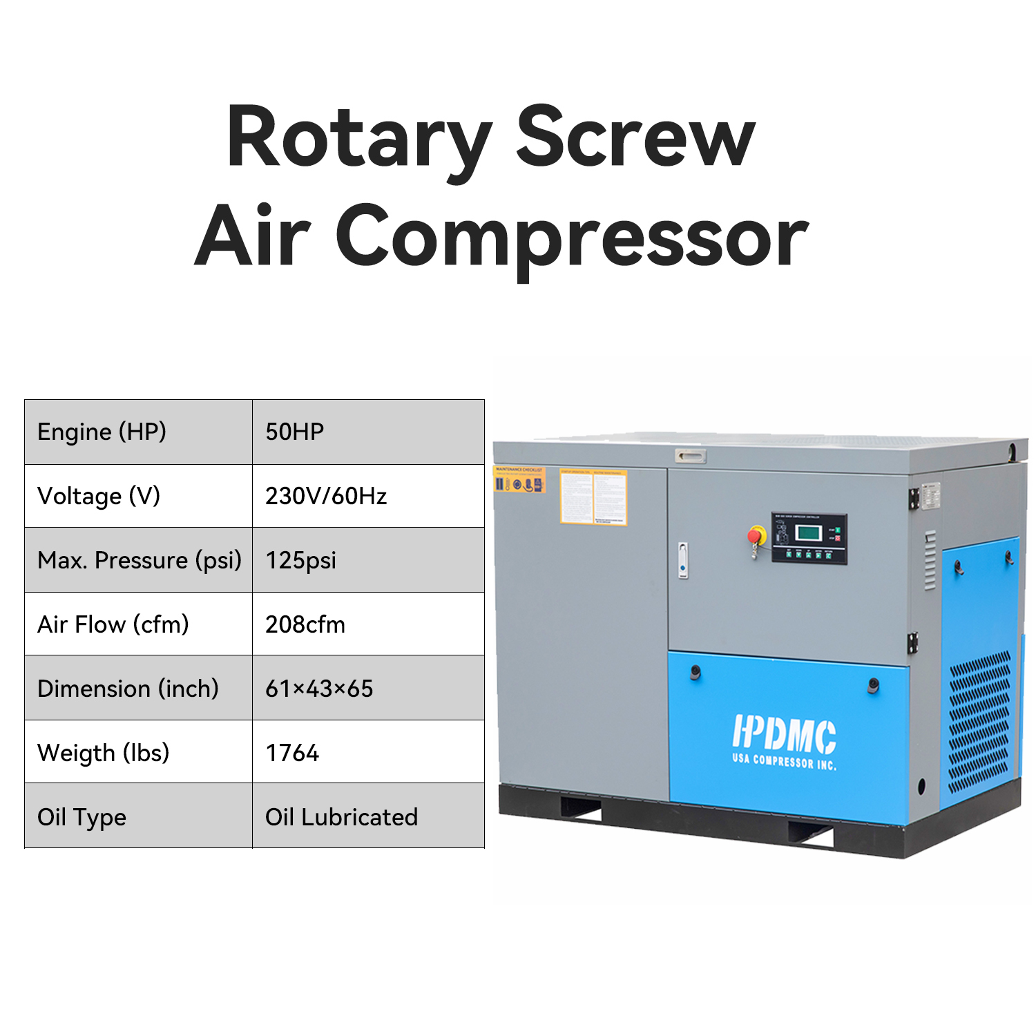 50HP Rotary Screw Air Compressor 220CFM 125PSI 230V 3 Phase