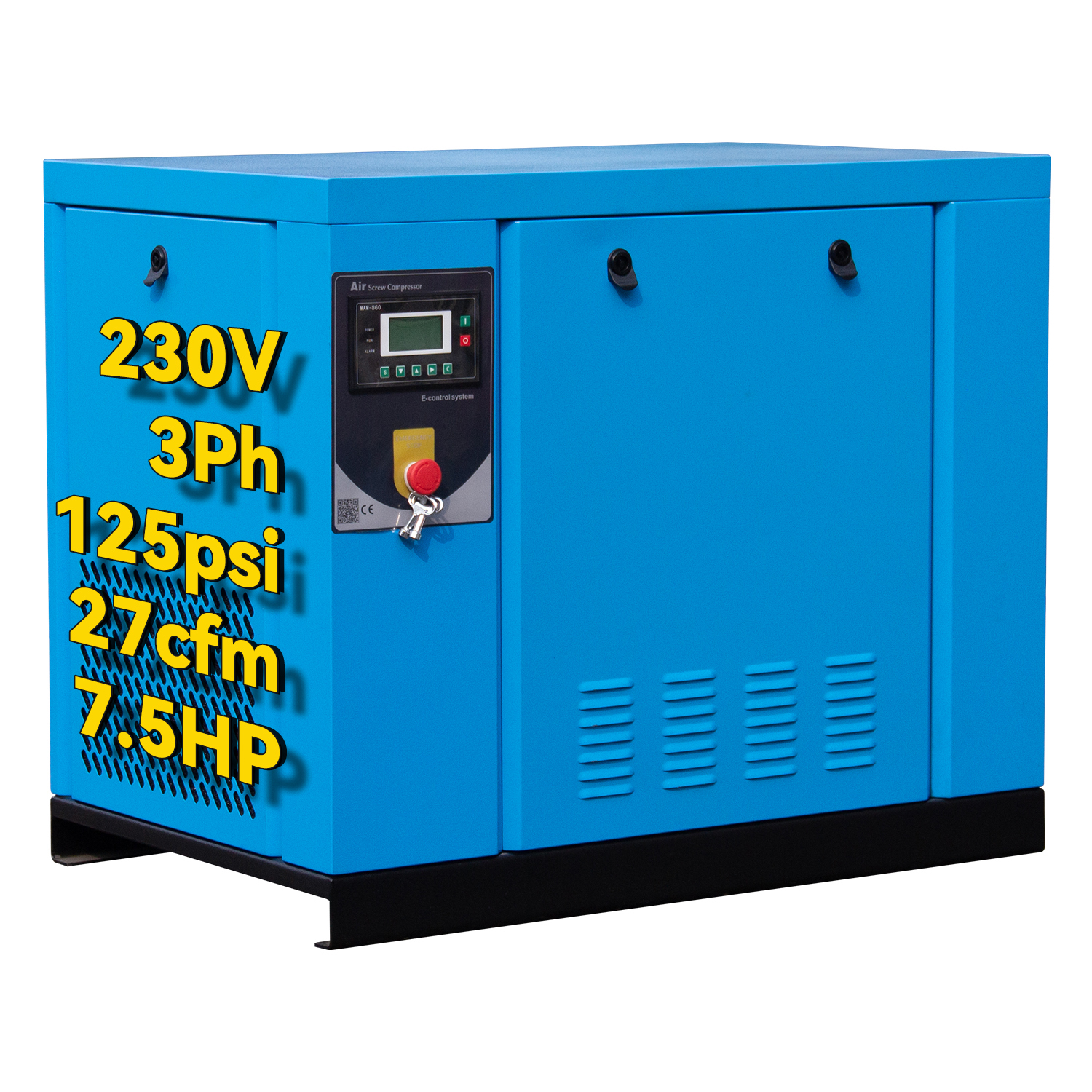 7.5HP Rotary Screw Air Compressor 27CFM 125PSI 230V 3 Phase